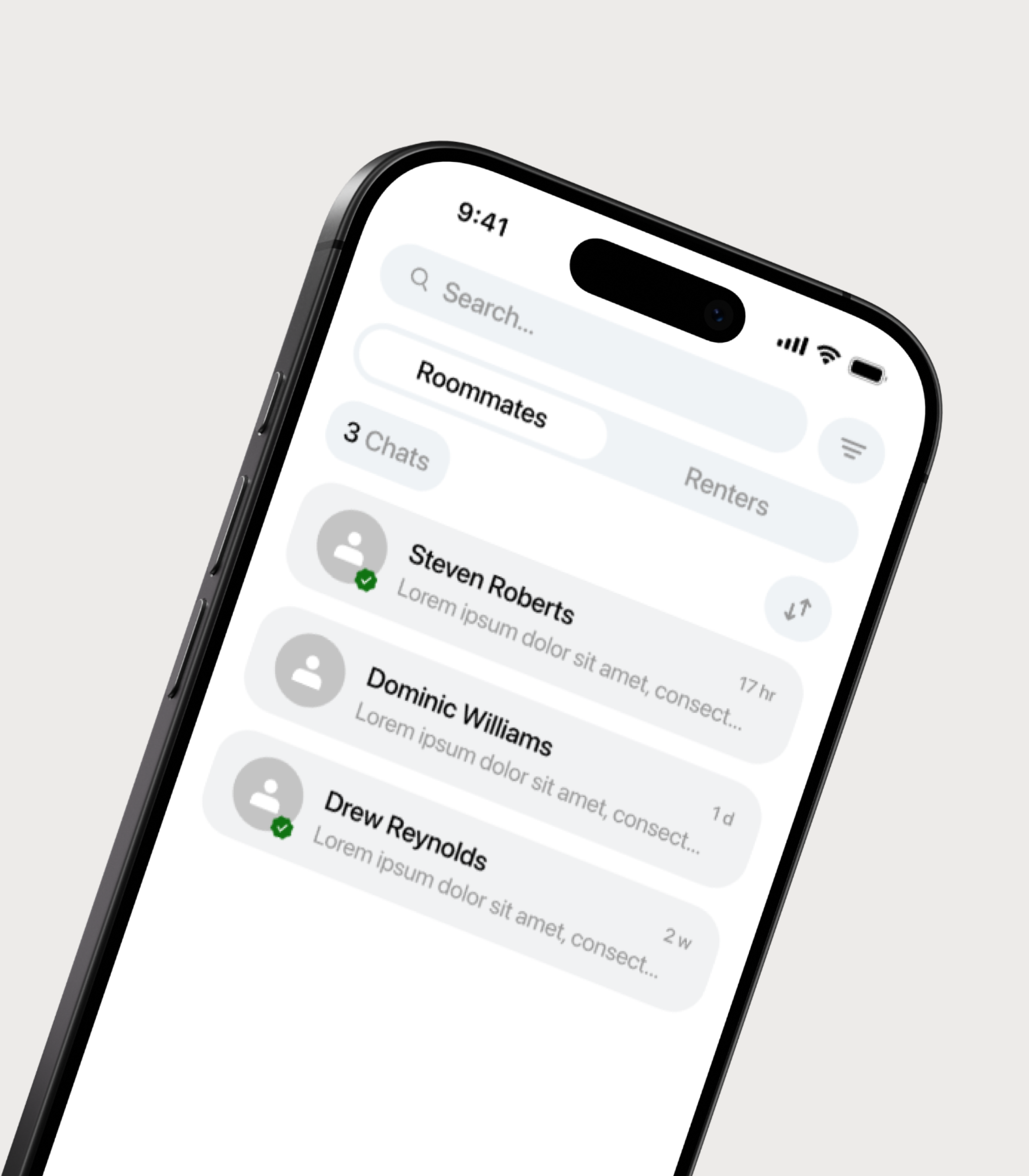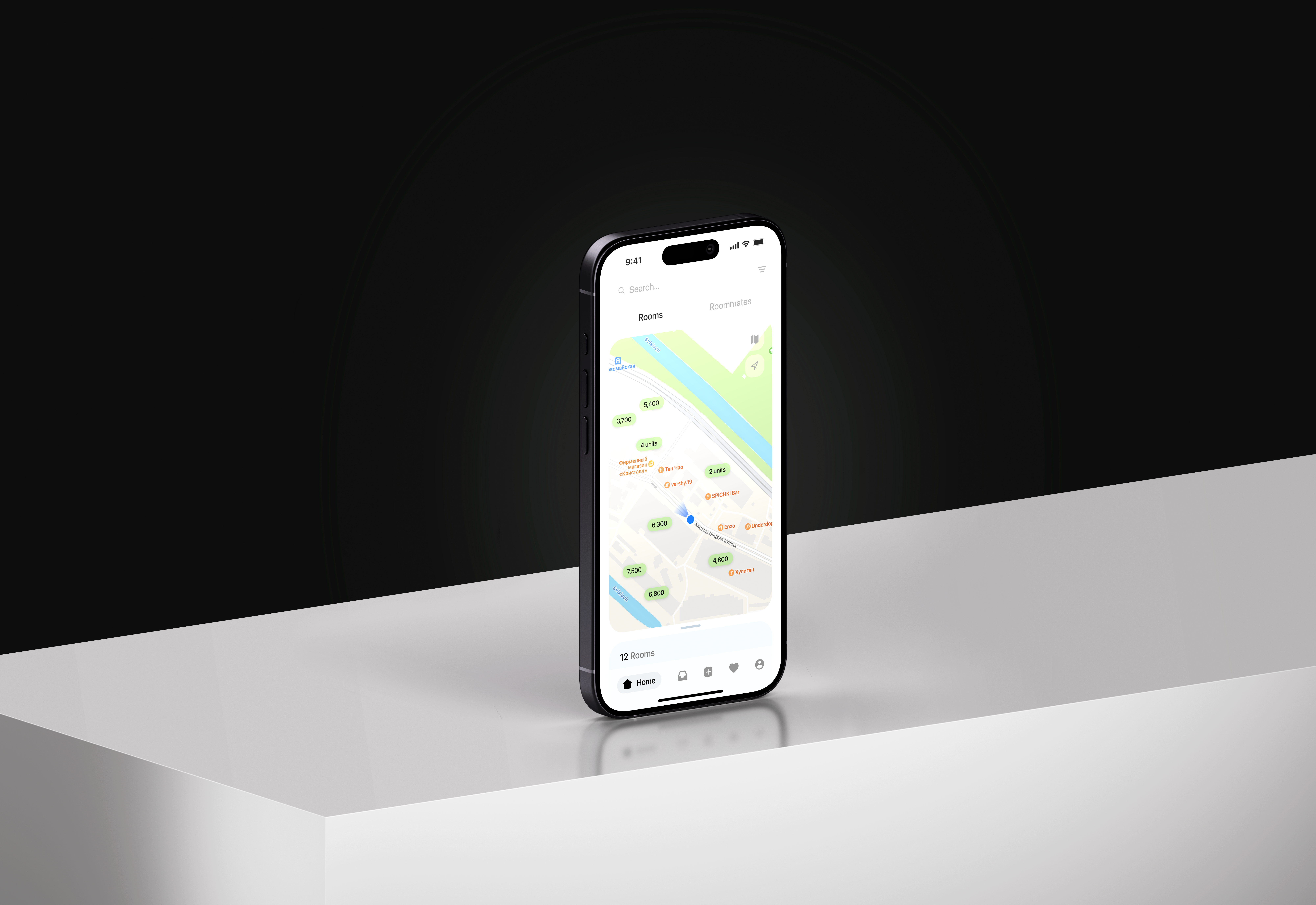 A startup concept app that brings together rental browsing and roommate discovery. Users can explore available rooms on a map, browse listings, and swipe through potential roommates, with in-app chat supporting direct conversations between renters and hosts.